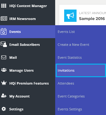 There are two ways to create an invitation for your event. The first method is via the Invitations section, and the second method is via the Events list section.